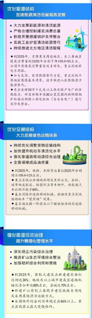 二是优化能源结构,加速能源清洁低碳高效发展。包括大力发展新能源和清洁能源,严格合理控制煤炭消费总量,积极开展燃煤锅炉关停整合,实施工业炉窑清洁能源替代,持续推进北方地区清洁取暖。