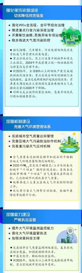 五是强化多污染物减排,切实降低排放强度。包括强化VOCs全流程、全环节综合治理,推进重点行业污染深度治理,开展餐饮油烟、恶臭异味专项治理,稳步推进大气氨污染防控。