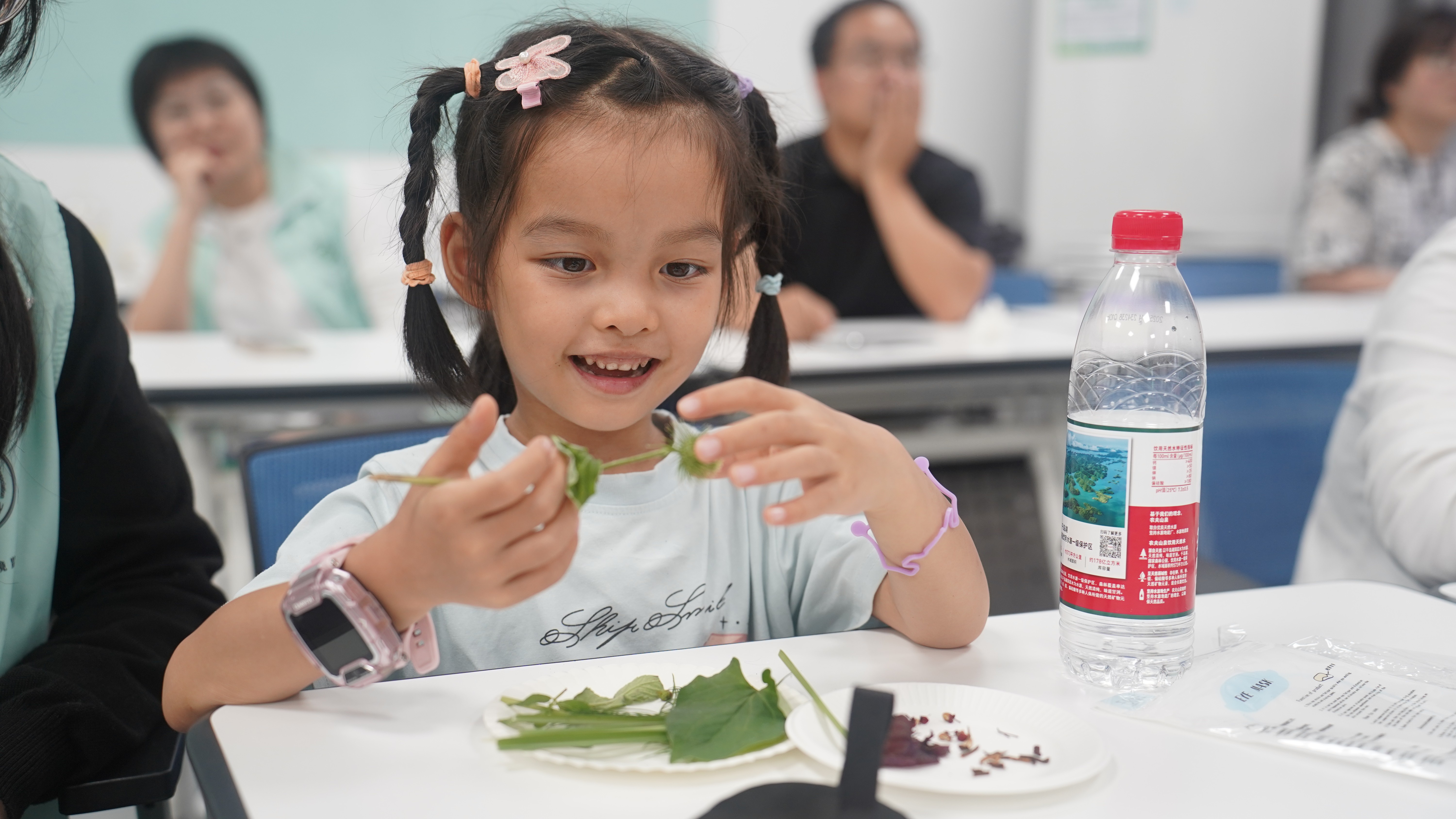 观察感受+动手实践历来是自然课堂的保留节目,这次生态探奇也不例外,带着穿行百草园香草间的香馥余味,小学员们玩起了五感体验游戏,通过触摸植物叶片、观察形态纹理、品味独特味道,来分辨不同的香草种类,更加立体、深刻地巩固植物知识,增强观察力和感知力,建立与自然的深层情感联结。活动中,孩子们还和父母一起动手,用采摘的香草制作应季实用的艾草锤,在这从自然植物到应用成品的转化过程中,体验劳动的价值与创造的乐趣。