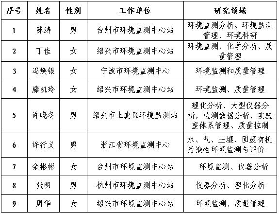 浙江省社会环境检测机构能力评估专家库新增人员名单